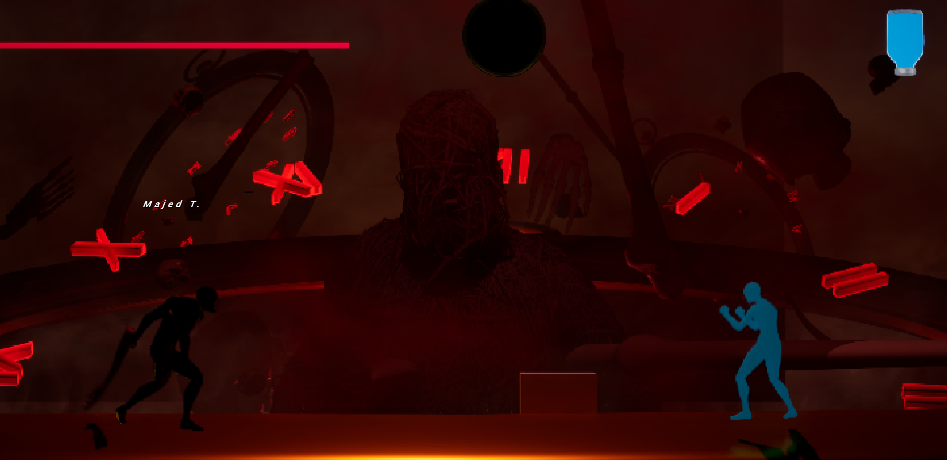 Precise and relatively fast movement. The Super is the only way the player can deal damage to “Big Demon” directly. When charged, the player will deplete all of the charge and blast the “Big Demon”, dealing damage to Player 2.